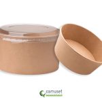 POT EN CARTON BRUN OU BLANC SELON FORMAT POUR PLATS PRÉPARÉS ET SALADES ET SON COUVERCLE SÉPARÉ TRANSLUCIDE